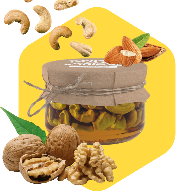 Микс орехов в цветочном мёде 250 г (стекло) в Барнауле